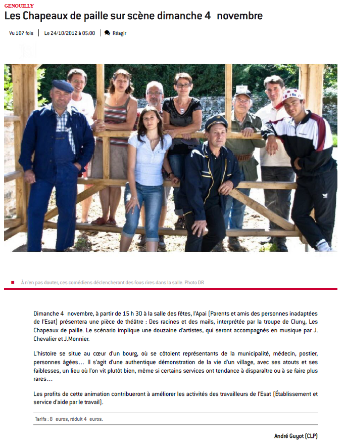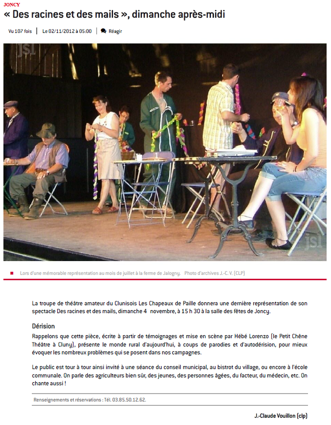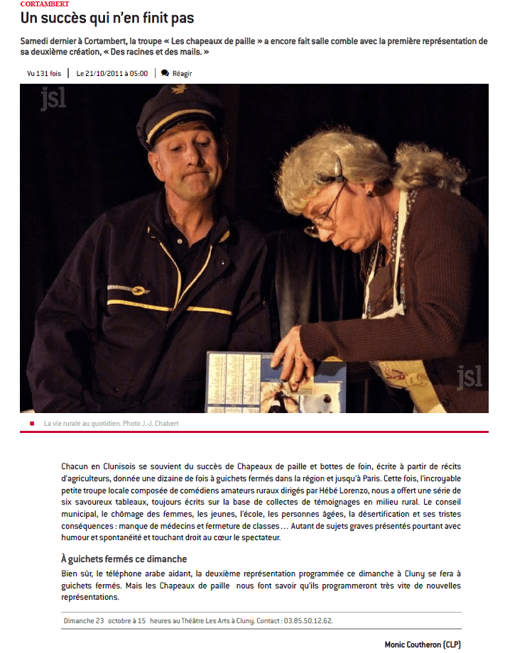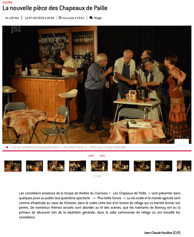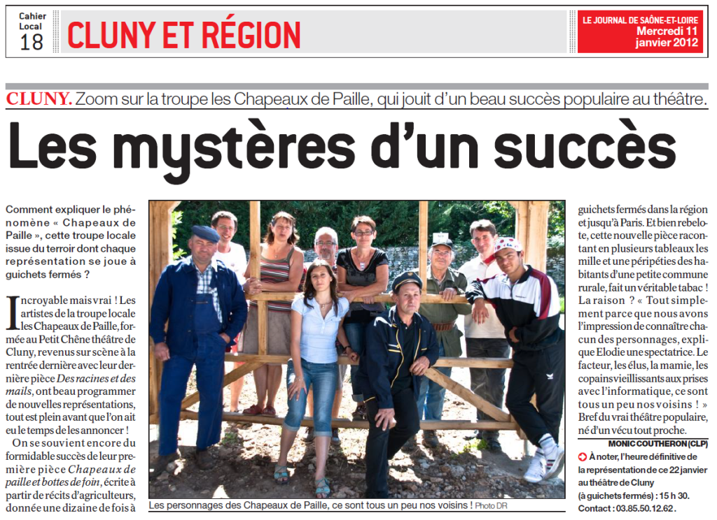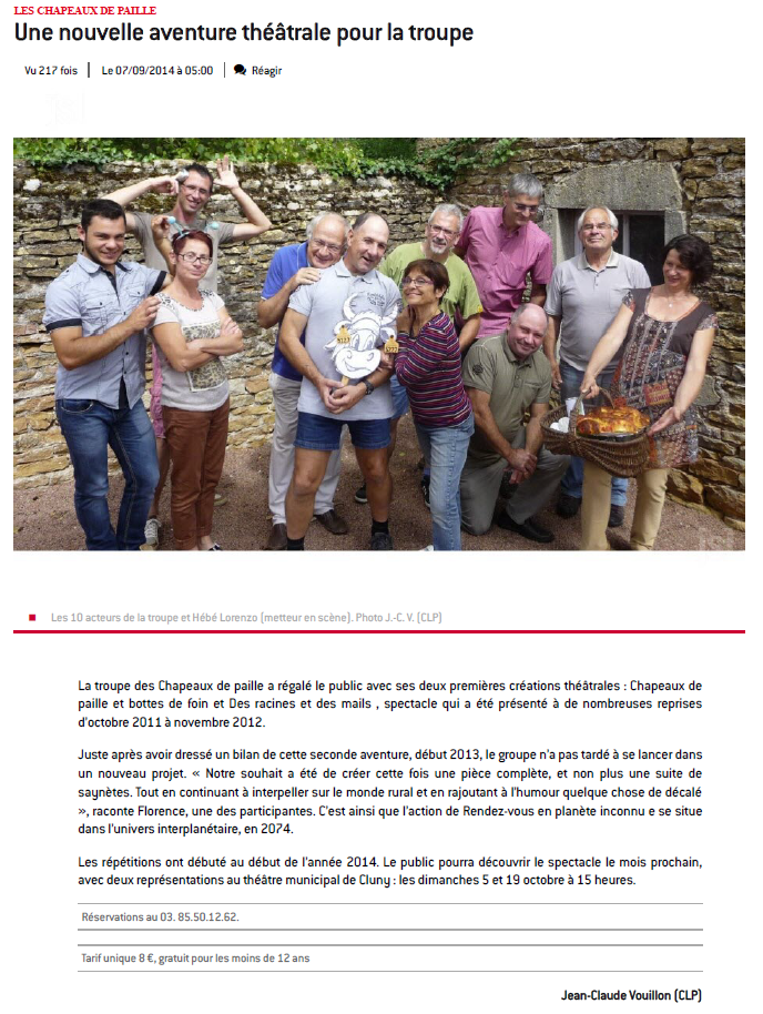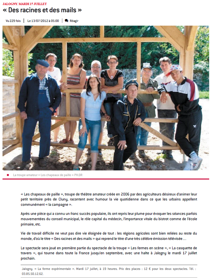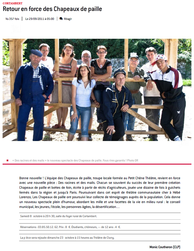 Les comédiens Clunisois des "Chapeaux de paille", tous agriculteurs à la retraite ou en activité, fils, proches ou parents d'exploitants agricoles, reviennent pour leur cinquième pièce de théâtre "L'avenir est dans le pré".