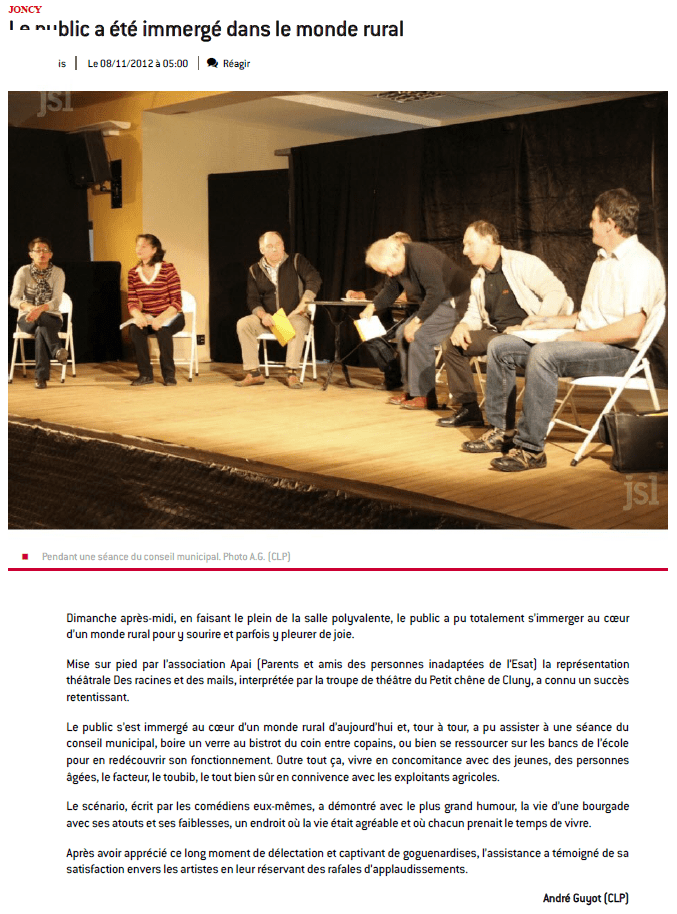 Cette pièce évoque le thème de la transmission des exploitations agricoles, de ce que cela implique comme difficultés et comme complexité. Des situations agrémentées d'humour, d'une bonne dose de réalisme, mais aussi et surtout d'autodérision. Les questions de succession, de cessation d'activité se posent avec tendresse.